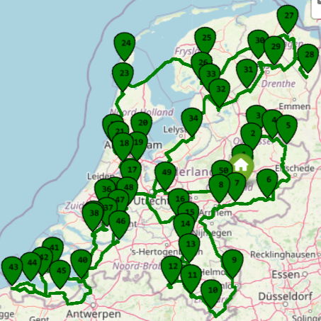Optimal route calculator for up to 100 locations using the real world road network.