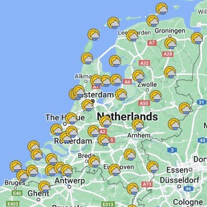 Python notebook that approximates the weather at a random location in NL with the KNMI hourly API.